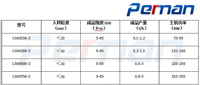 (2)高細度:配備自分流高濃相分級系統,粉碎粒度在D50=5~15um可調。