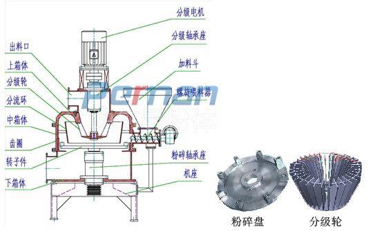 5.根據(jù)物料的特性在粉碎部件和分級部件方面進行專門的設(shè)計,由通用型粉碎機升級為專用型粉碎機,進一步提高粉碎效率。