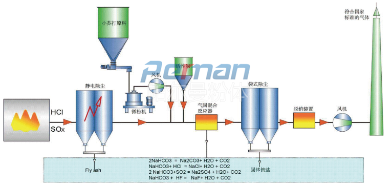 隨著環保法規越來越嚴格的要求,帕爾曼結合歐美先進工藝開發的小蘇打干法脫酸原理的工藝得到越來越多的應用。采用碳酸氫鈉為吸附劑的干法吸附去除煙氣中所含的各種污染物。其凈化效果可與已知的其它方式相比,如采用石灰乳為吸附劑的噴霧吸附法。干法煙氣凈化不僅可用于煤電廠、危廢處理,市政垃圾或替代燃料焚燒廠,還可廣泛地用于玻璃、水泥、冶金等行業的工業爐。采用干法煙氣凈化可以經濟去除含有酸性物質的氣體,如SO2,HCI等,達到國標煙氣排放標準。