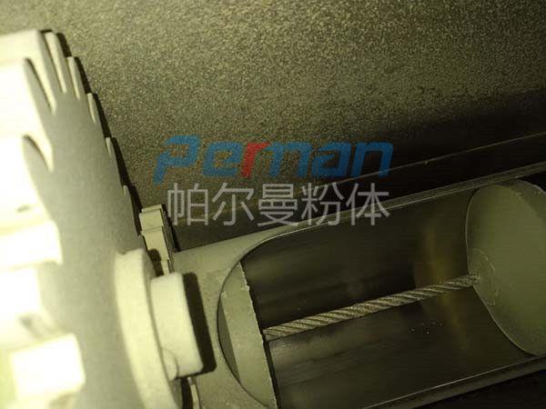 帕爾曼粉體設(shè)備設(shè)計(jì)生產(chǎn)的這種鋼絲繩管鏈輸送機(jī)包括自動(dòng)箱(從動(dòng)箱)、8齒鏈輪、電機(jī)減速機(jī)、帶盤片的運(yùn)送鏈條,輸料管道。所述自動(dòng)箱(從動(dòng)箱)兩邊均設(shè)置有支管,支管與自動(dòng)箱(從動(dòng)箱)均相連通,8齒鏈輪裝置于自動(dòng)箱(從動(dòng)箱)內(nèi),所述輸料管形狀為曲折形,經(jīng)過法蘭銜接。輸料管兩端與自動(dòng)箱(從動(dòng)箱)兩邊設(shè)置的支管別離相連通地對(duì)應(yīng)銜接,運(yùn)送鏈穿過輸料管和支管內(nèi)孔與自動(dòng)鏈輪相傳動(dòng)銜接。