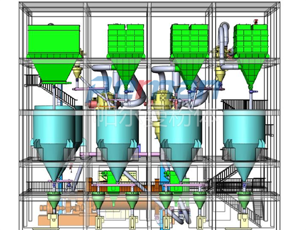 ● 電控系統采用程序控制,控制整個生產流程,從進料料倉、研磨分級,直到產品包裝。
