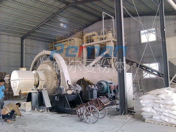 ●工藝流程主要包括破碎(一般采用兩段破碎)、研磨、分級、包裝、料倉、輸送、提升等。球磨機后可接多臺分級機并聯分級,也可接多臺串聯分級,同時生產多個粒度號的產品。球磨機與分級機組成一個閉路循環系統。